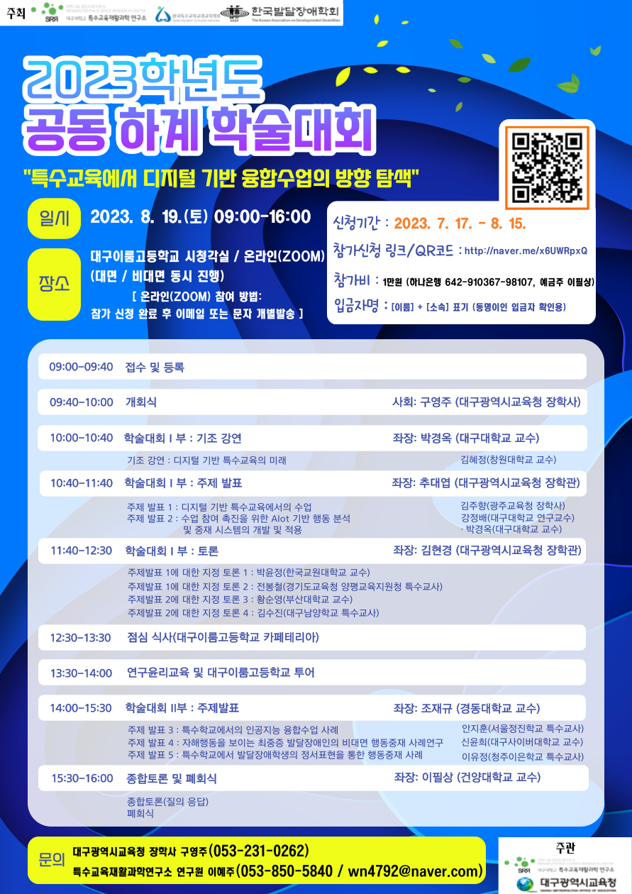 - 2023학년도 공동 하계학술대회 포스터 내 QR코드 (첨부파일 참조)