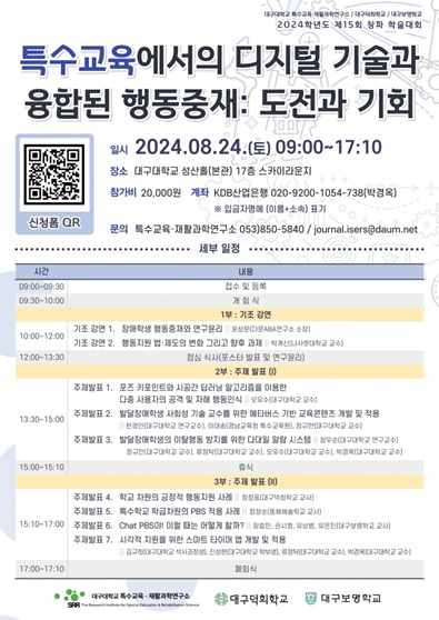 '특수교육에서의 디지털 기술과 융합된 행동중재: 도전과 기회'를 주제로 9시부터 17시 10분까지 진행될 예정입니다.
